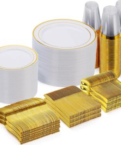 Gold Disposable Plates for 100 Guests, Plastic Plates for Party