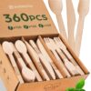 Compostable Utensils Set – 360 Pieces Sturdy Wood Disposable Cutlery