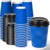 Harvest Pack 16 oz Disposable Coffee Cups, Insulated Ripple Double-Walled Paper Cup with Lid